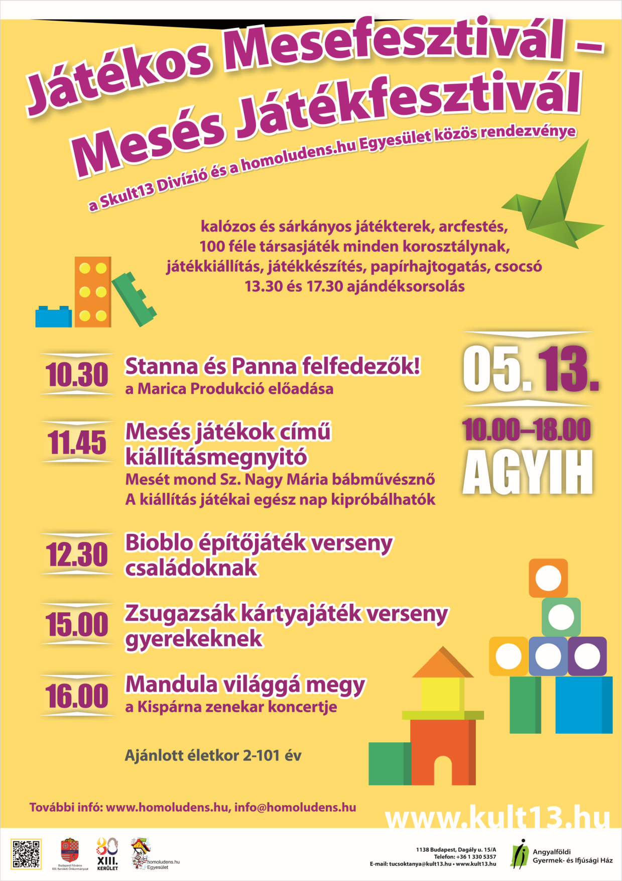 Három napos játékfesztivál Budapesten, az Angyalföldi Gyermek- és Ifjúsági Házban. Vidám szórakozás minden korosztálynak.